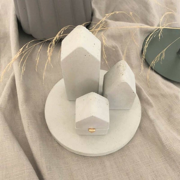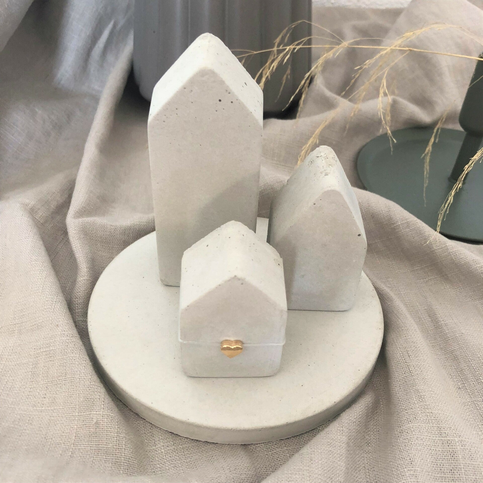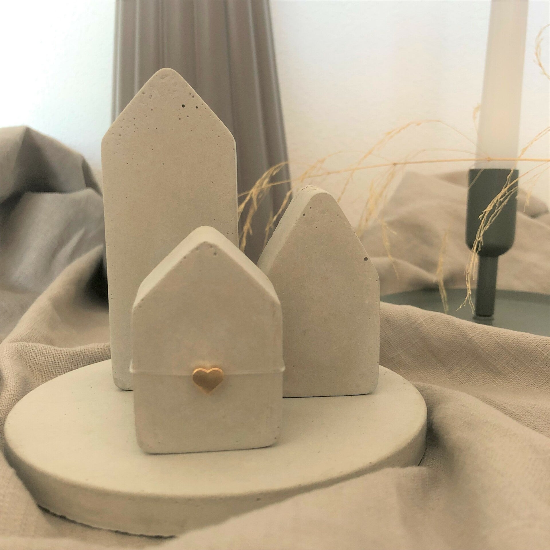 - Häuser Set ♥ mit goldnem Herz und runder Betonplatte